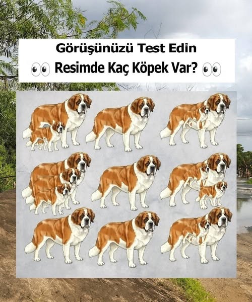 İlk bakışta bu resim, basit bir St. Bernard dizilimi gibi görünüyor – belki dokuz tane? Çoğu insan orada saymayı bırakıp doğru tahmin ettiğinden emin olarak devam ediyor. Ancak bu görselin altında akıllıca bir numara gizli.