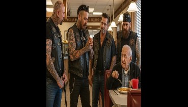 Bir motosikletçi, bir lokantada