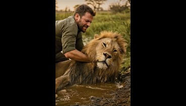 Adamın biri aslanı boğulmak üzere olan nehirden kurtardı