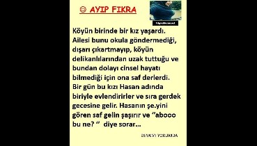 Köyün birinde bir kız yaşardı. Ailesi bunu okula göndermediği, dışarı çıkartmayıp, köyün delikanlılarından uzak tuttuğu ve bundan dolayı Detaylar yorumda