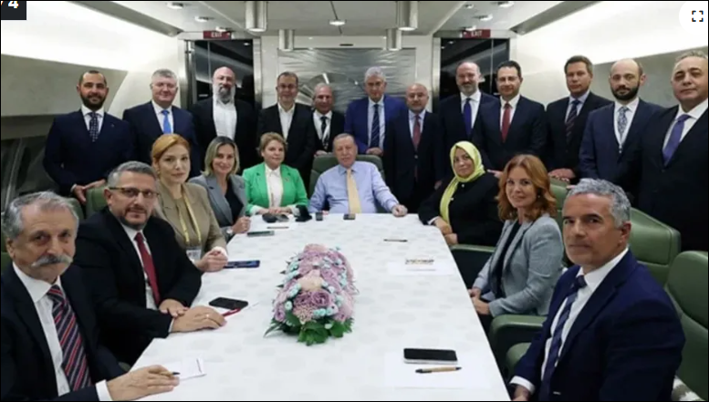 Cumhurbaşkanı Recep Tayyip Erdoğan, Türk Devletleri Teşkilatı 12. Zirvesi'ne katılmak üzere gittiği Azerbaycan temaslarının ardından yurda dönüşünde uçakta gazetecilerin sorularını yanıtladı. Ancak uçaktaki gazeteciler arasında yer alan bir isim, dikkatleri çekti.