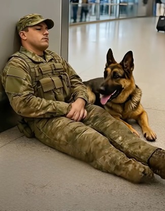 Havaalanındaki yolcular, üniformalı bir adamın yerde yattığını gördüler; köpeği yaklaşan herkese hırlıyordu.