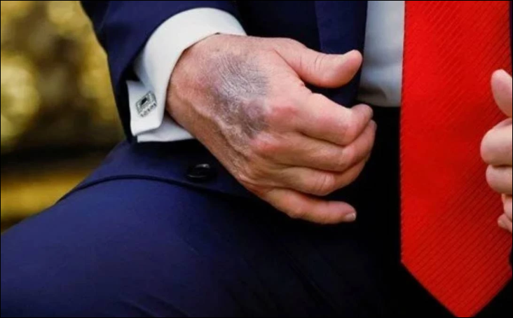Trump'ın doktoru Sean Barbabella ise yaptığı açıklamada, "Bu durum, sık sık el sıkışmaktan ve standart bir kardiyovasküler önleme rejiminin parçası olarak alınan aspirin kullanımından kaynaklanan hafif yumuşak doku tahrişiyle tutarlıdır. Bu, aspirin tedavisinin iyi bilinen ve zararsız bir yan etkisidir" ifadelerini kullandı.