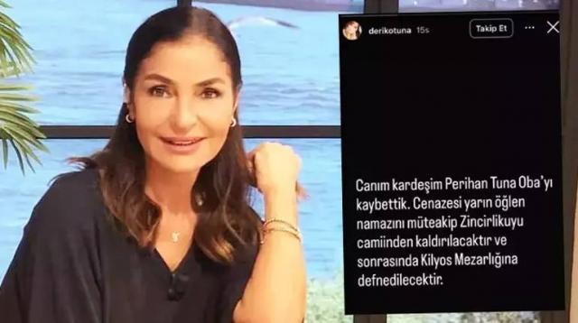 Derya Tuna, sosyal medya hesabından kardeşi Perihan Tuna Oba’nın vefat ettiğini açıkladı. Acısını takipçileriyle paylaşan Tuna, cenaze bilgilerini de duyurdu. Ayrıntılar diğer sayfaya geçerek öğrenin Derya Tuna, sosyal medya hesabından yaptığı paylaşım ile sevenleriyle acısını paylaştı. Derya Tuna, geçtiğimiz akşam saatlerinde yaptığı açıklamada, kardeşi Perihan Tuna Oba’nın vefat ettiğini duyurdu. Derya Tuna, paylaşımında hem acısını takipçileriyle paylaştı hem de cenaze detaylarını aktardı. Tuna, paylaşımında şu ifadelere yer verdi: “Canım kardeşim Perihan Tuna Oba’yı kaybettik. Cenazesi öğlen namazını müteakip Zincirlikuyu camiinden kaldırılacaktır ve sonrasında Kilyos Mezarlığı’na defnedilecektir” Derya Tuna’nın paylaşımının ardından takipçileri başsağlığı dileklerini iletti. Ünlü sunucu, oyuncu ve şarkıcı Derya Tuna, 5 çocuklu bir ailede 17 Temmuz 1965 yılında dünyaya geldi.