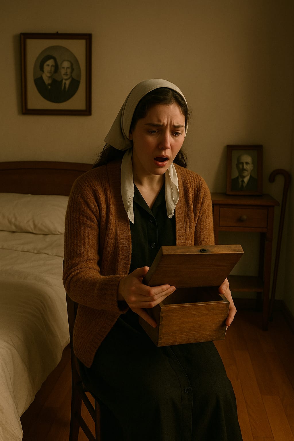 “Bak,” dedi, gözleriyle odanın köşesini gösterdi. “Dolabın üstünde tahta bir kutu var…”