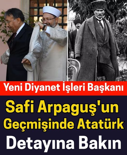 Resmi Gazete’de yayımlanan Cumhurbaşkanlığı kararıyla görev süresi dolan Diyanet İşleri Başkanı Ali Erbaş’ın yerine İstanbul İl Müftüsü Prof. Dr. Safi Arpaguş atandı. Arpaguş, Diyanet İşleri Başkanlığı’nın 19. başkanı olarak göreve başlayacak.Arpaguş’un CV’sinde Atatürk Detayı